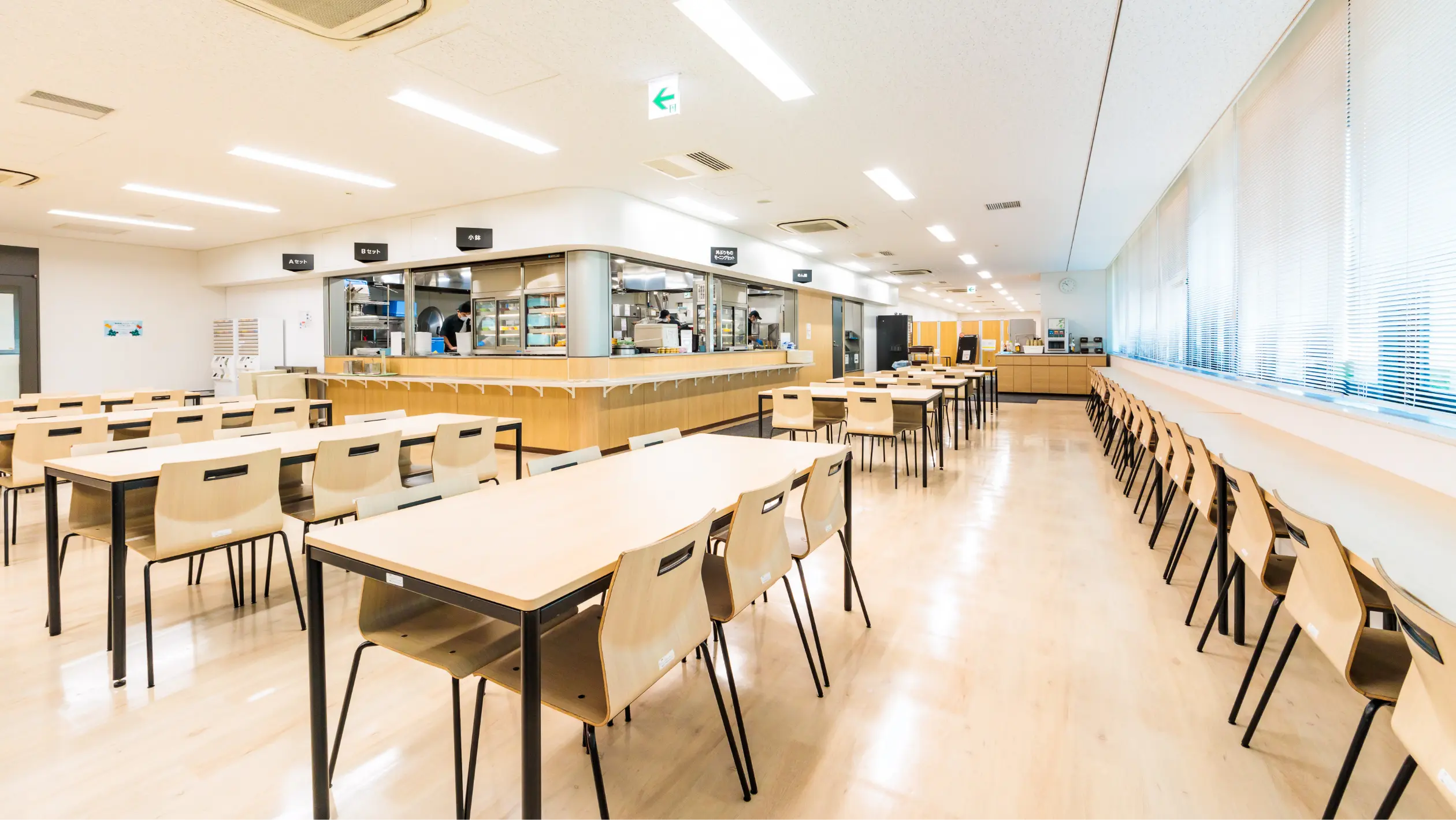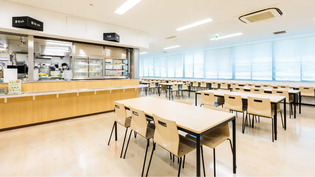 勤務時間を考慮し、朝と昼の2回社員食堂を営業、割安の価格で食事を提供しています。日替わりメニューとなっており、多くの社員が利用しています。